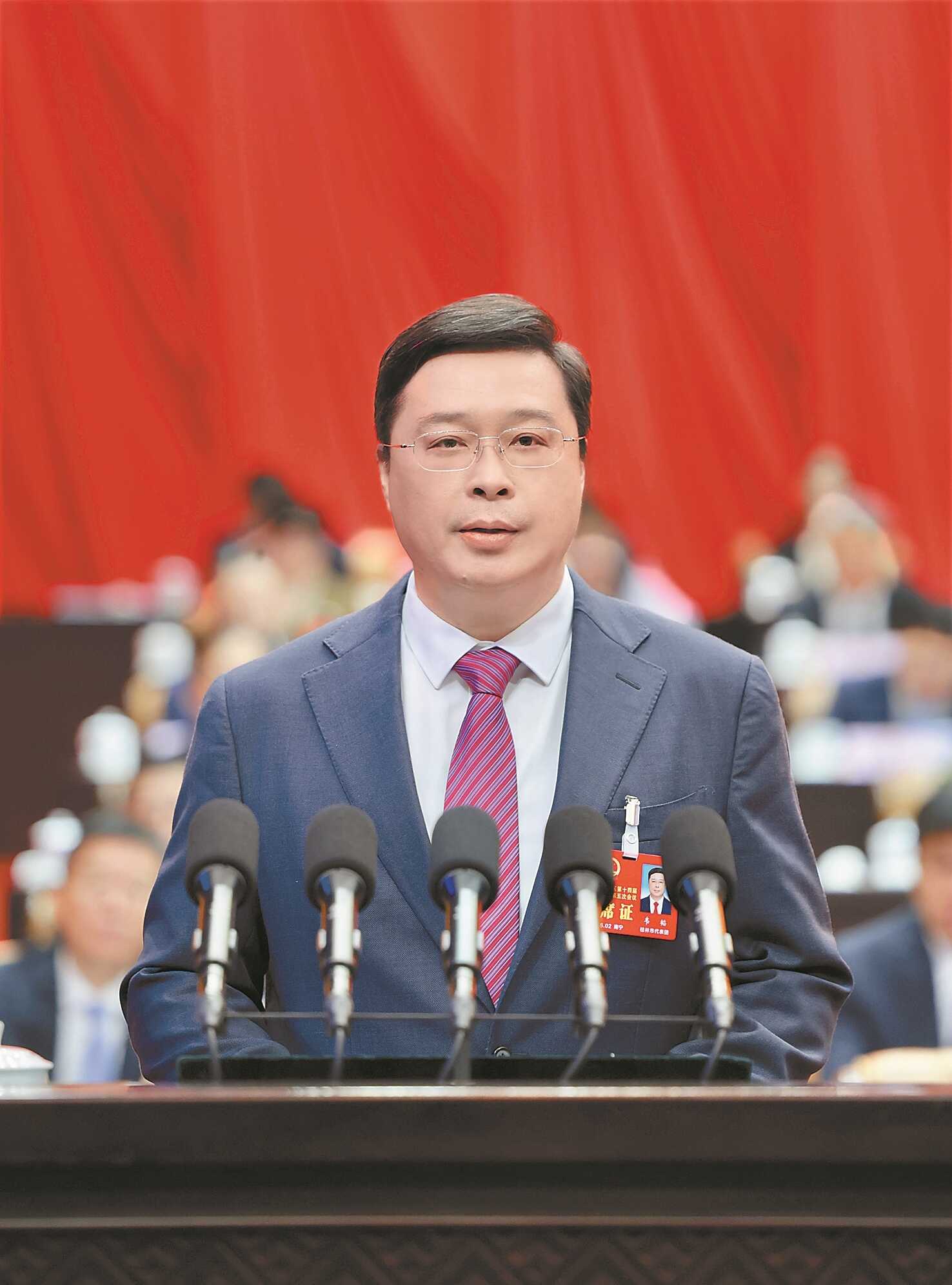 韦韬指出,今年我区经济社会发展主要预期目标是:经济增长5%左右;城镇调查失业率5.5%左右;居民消费价格指数涨幅2%以内;居民人均可支配收入和经济增长同步;粮食产量只增不减;减排降碳控制在国家下达目标内。要聚焦聚力发展壮大智能经济,深化AI与制造业融合,拓展多领域AI场景应用,推动企业数字化转型,促进人工智能创新应用。要全力以赴做好强产业文章,集中资源发展制造业十大现代化支柱产业,强化服务业运行调度和统计监测,实施科技创新支撑支柱产业高质量发展行动,因地制宜深化产业园区改革。要持之以恒抓好“三农”工作,深挖设施农业潜力,提高强农惠农富农政策效能,持续巩固拓展脱贫攻坚成果。要多措并举提振消费,夯实消费增长基础,培育多元消费新场景,让消费市场热起来、旺起来。要千方百计扩大有效投资,扎实推进“两重”建设,加大招商引资力度,全力确保平陆运河建成通航,推进一批航道、铁路、高速公路等项目建设。要加大力度优化营商环境,有序推进“人工智能+政务服务”,规范涉企行政执法,深化实体经济调研服务,强化民间投资项目资金和要素协同保障。要持续扩大高水平开放,加快广西自贸试验区首创式、集成式探索,深度参与中国—东盟自贸区3.0版建设,启动全区口岸智慧化建设,提高双向投资合作水平。要协同推进县域经济发展和城市工作,因地制宜建设现代化人民城市,实施县域经济“创先争优”三年行动,构建“城市引领升级、县域承载配套、城乡协同发力”格局。要坚定不移推进绿色低碳发展,纵深推进涉重金属污染、畜禽养殖污染、水污染等领域问题排查整治,协同推进降碳减污扩绿增长。要全心全意办好民生“头等大事”,深入推进“暖心民政”三年行动,筹措890.59亿元实施十大为民办实事工程项目。要深入抓好安全生产,加强重点领域安全隐患排查整治,推进中小金融机构改革化险,支持国防和军队现代化建设。要坚决扛起全面从严治党政治责任,树立和践行正确政绩观,全面提升政府履职能力,坚定不移推进政府党风廉政建设和反腐败斗争。
