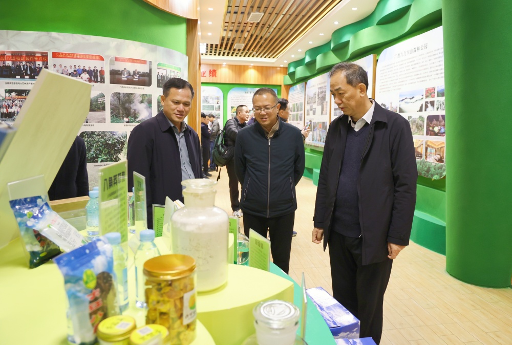 福建省林业局副局长郑健参观六万林场展示馆,玉林市副市长马少华陪同。