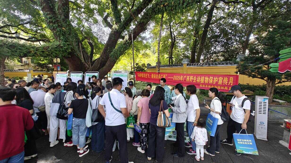 2025年9月26日,桂林市林业和园林局联合广西师范大学生命科学学院、花坪国家级自然保护区、猫儿山国家级自然保护区以及秀峰区林业主管部门,在独秀峰王城景区开展野生动植物保护主题宣传活动。