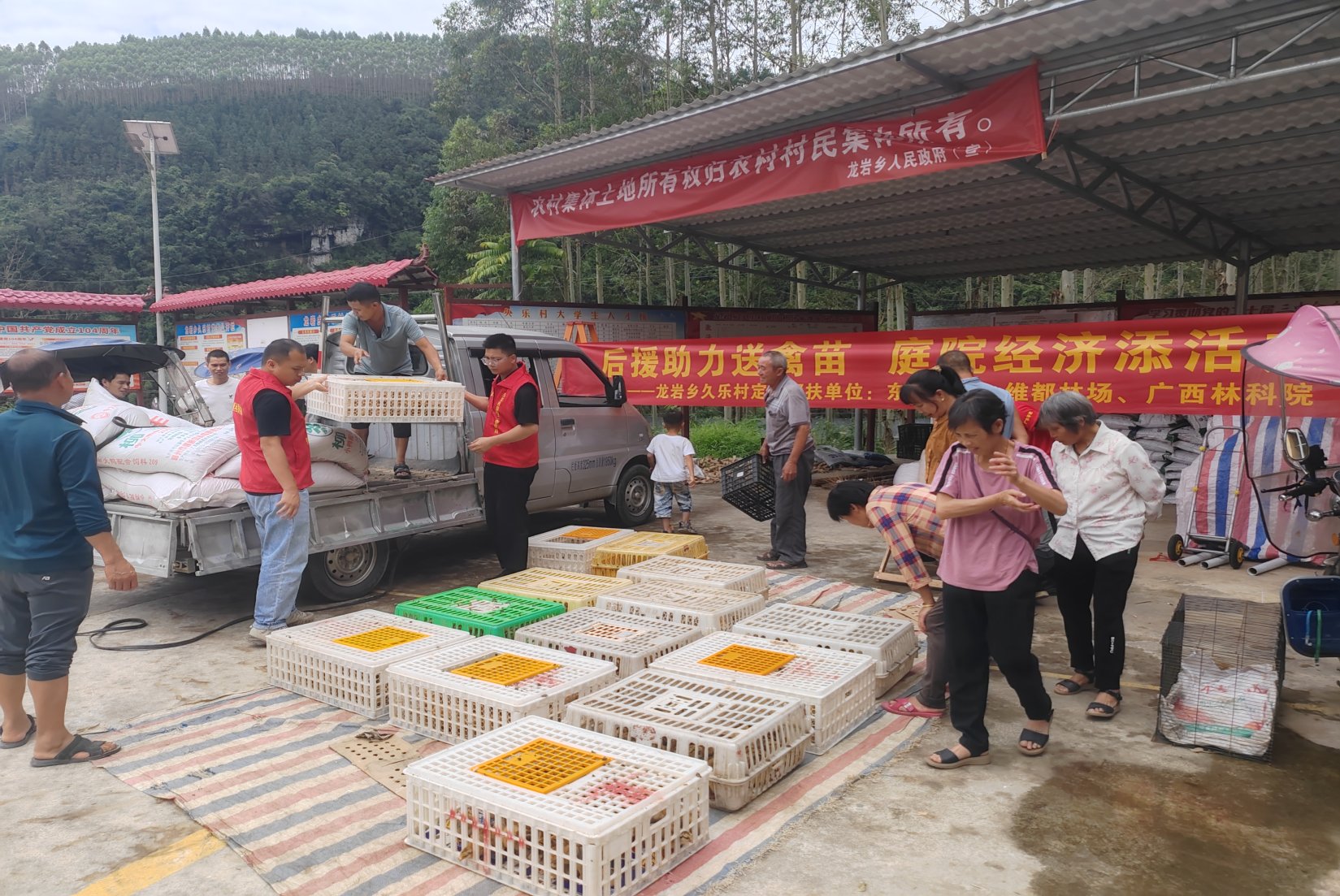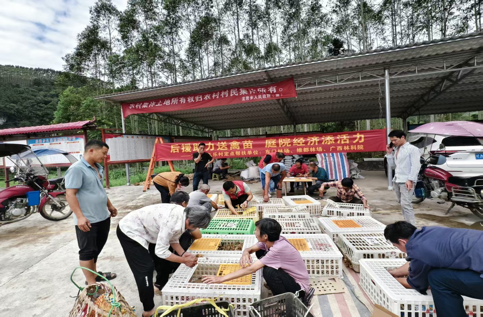 2025年9月27日,东门林场、维都林场、广西林科院向帮扶的环江毛南族自治县龙岩乡久乐村的25户脱贫户免费发放鸡苗、鸭苗共计1400只,引导农户利用家庭庭院发展生态养殖。此次发放预计可实现户均年增收2000元以上。