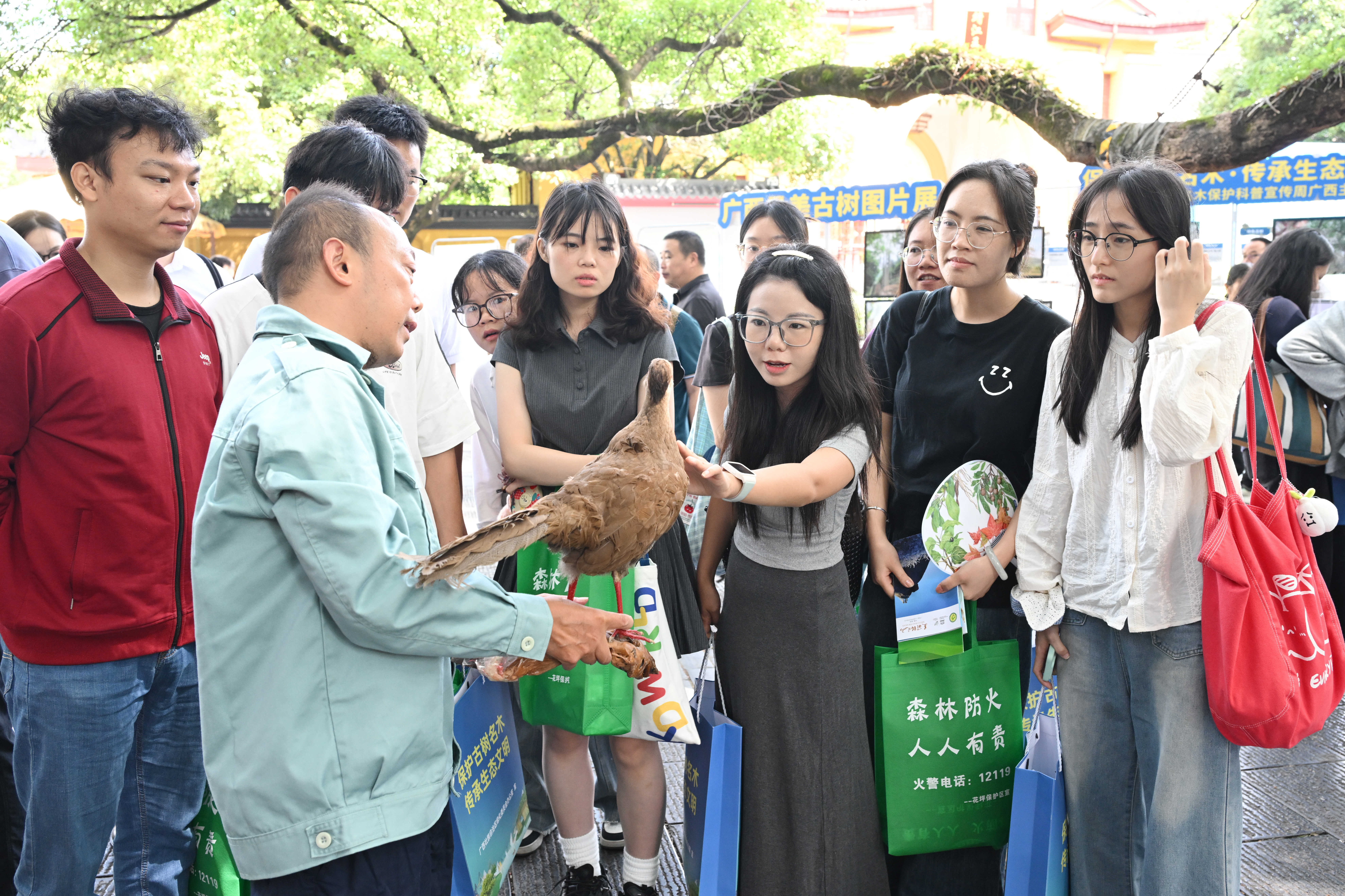 本次活动现场内容丰富、形式多样。桂林市林业和园林局领导首先介绍了全市古树名木保护工作概况;广西生态文化宣传使者随后为公众科普了古树名木保护相关知识;学生代表和古树名木保护工作者分别分享了他们与古树之间的动人故事。工作人员通过三维可视化模型,生动展示古树形态,以科技手段呈现古树生命之美、传递绿色生态理念。参与人员共同走进广西师范大学王城校区,实地感受古树名木保护与校园人文环境的和谐融合。现场还设置了最美古树图片展和保护宣传展板,吸引众多市民游客驻足观看、拍照打卡,有效扩大了宣传影响力。