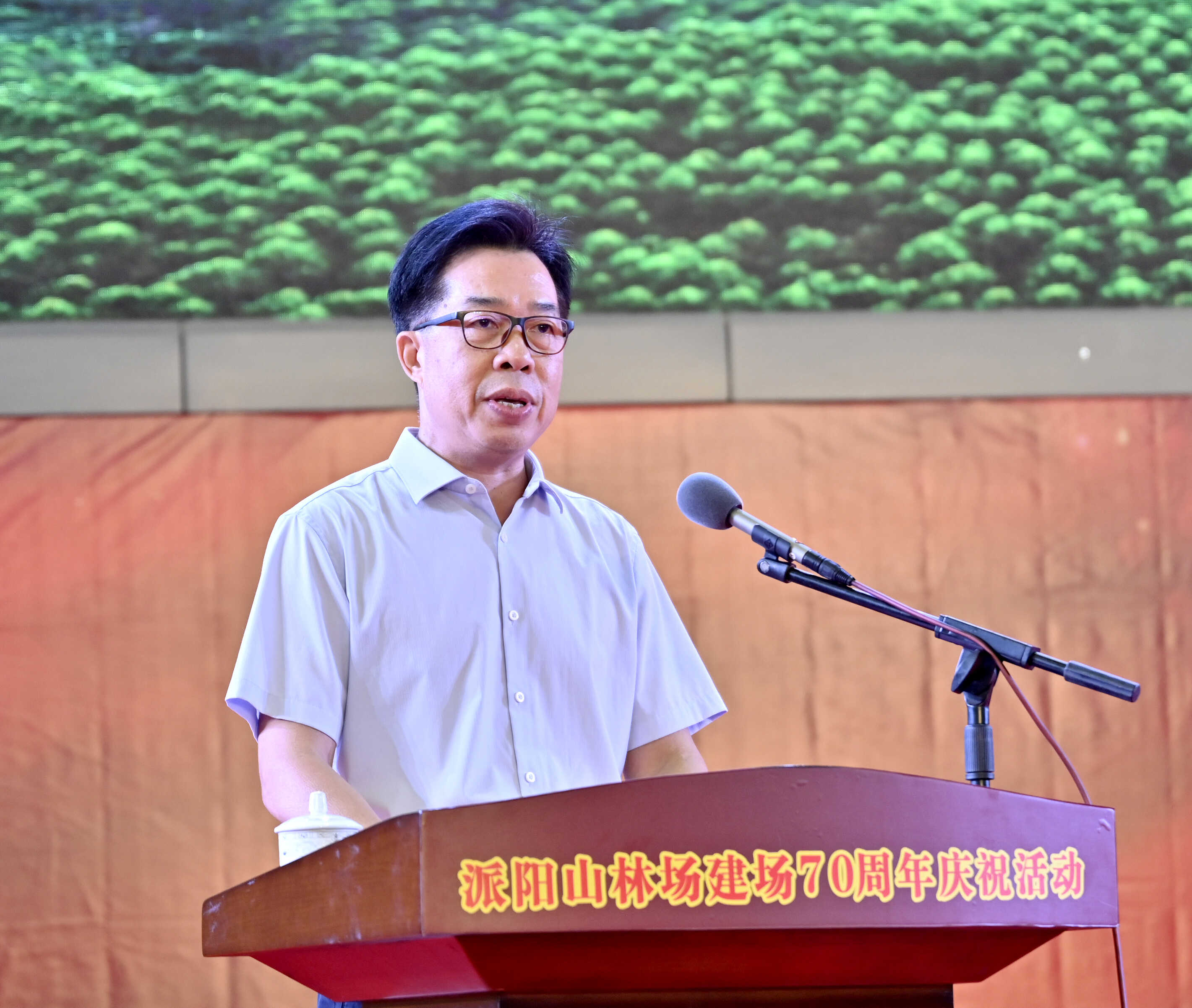 蒋桂雄指出,70年来,派阳山林场展现国有林场的担当使命,林场实现综合实力显著提升,职工民生改善,党的建设全面加强,构建起“以林为本、三产融合”的产业体系,实现了从“单一林业”到“多元共生”的转变,筑牢祖国南疆生态屏障。