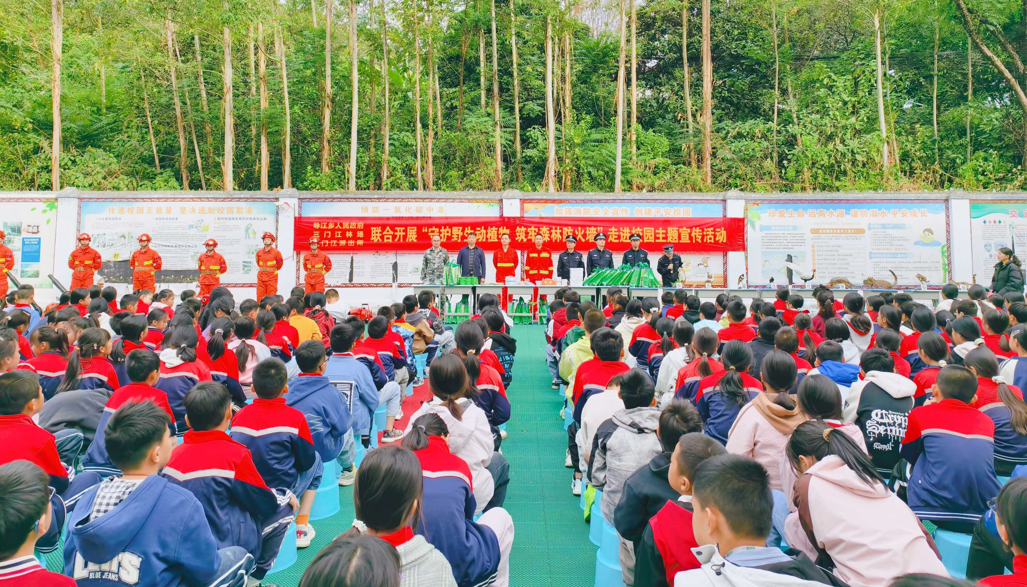 2025年10月22日,三门江林场联合导江乡政府、三门江派出所走进导江乡中心小学,共同开展“守护野生动植物・筑牢森林防火墙”主题宣传活动,共600余名师生参加。