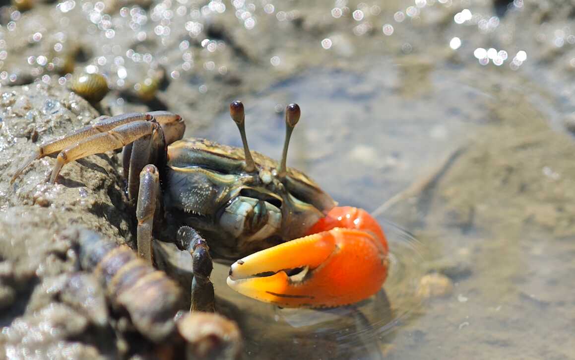 科研团队鉴定出的138种大型底栖种生物中,初步判断有锐刺招潮、笔状多环海龙、隆线肝突蟹等20种为新记录种。同时,新增记录陆生脊椎动物38种,其中包含棕腹鹰鹃、红脚田鸡等鸟类36种,以及两栖爬行类粗皮姬蛙等。