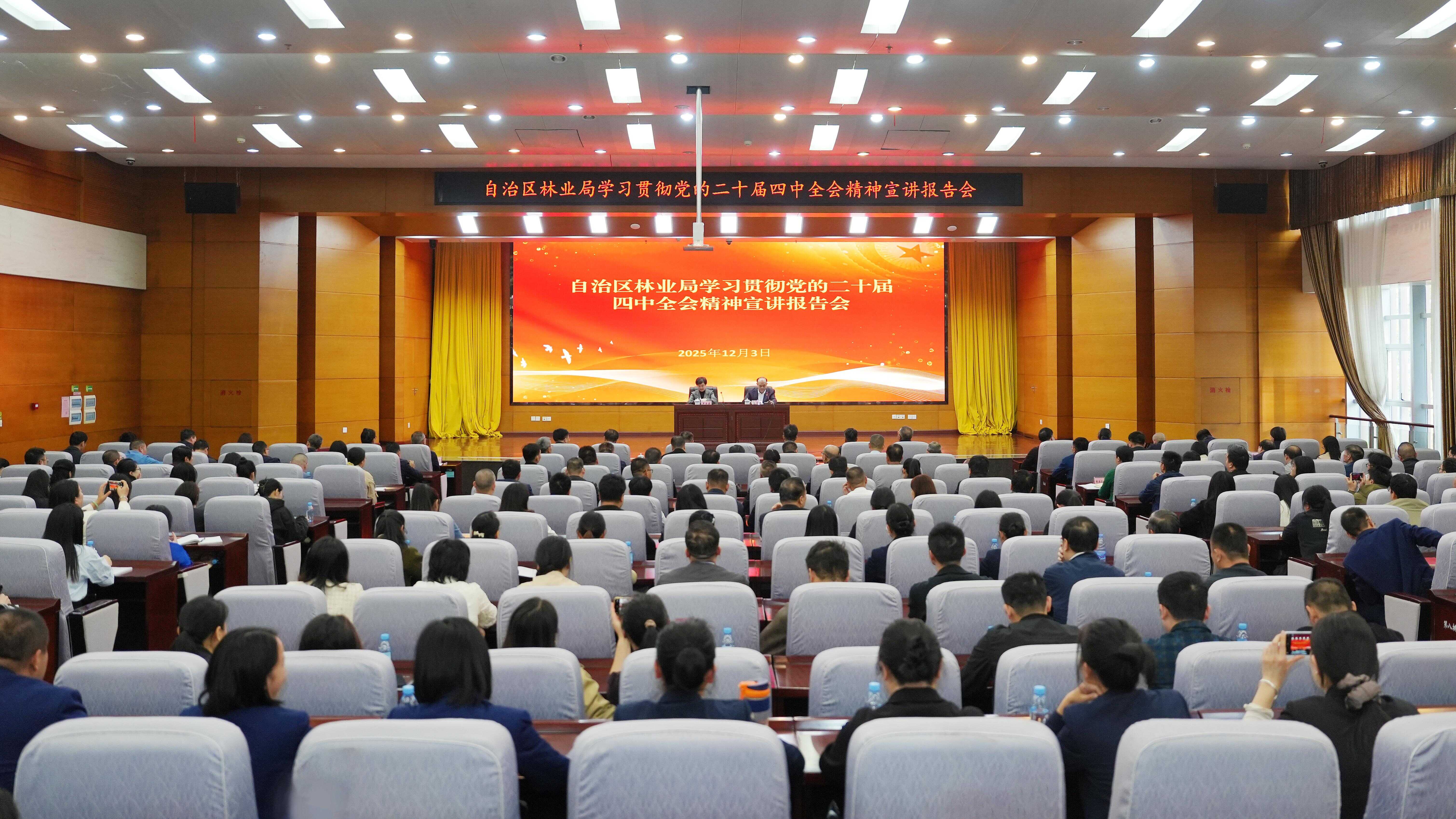 2025年12月3日,自治区林业局学习贯彻党的二十届四中全会精神宣讲报告会举行。自治区宣讲团成员、自治区党委区直机关工委分管日常工作的副书记罗荣莉作宣讲报告,自治区林业局党组书记、局长蔡中平主持报告会。