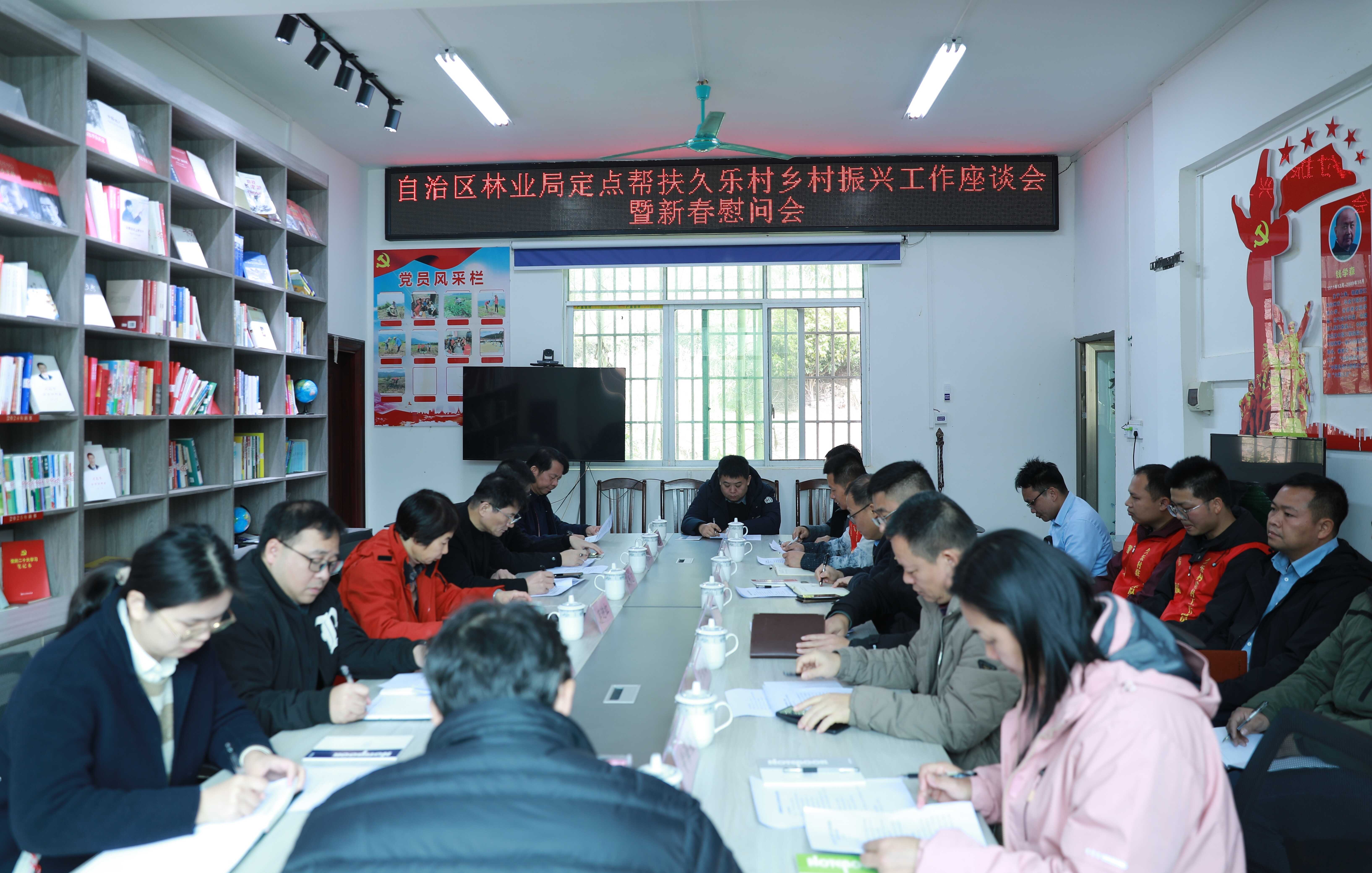 2026年1月28日,自治区林业局二级巡视员蒋迎红带队到定点帮扶环江毛南族自治县龙岩乡久乐村、洛阳镇玉合村开展乡村振兴调研与新春慰问活动,并分别召开工作座谈会。