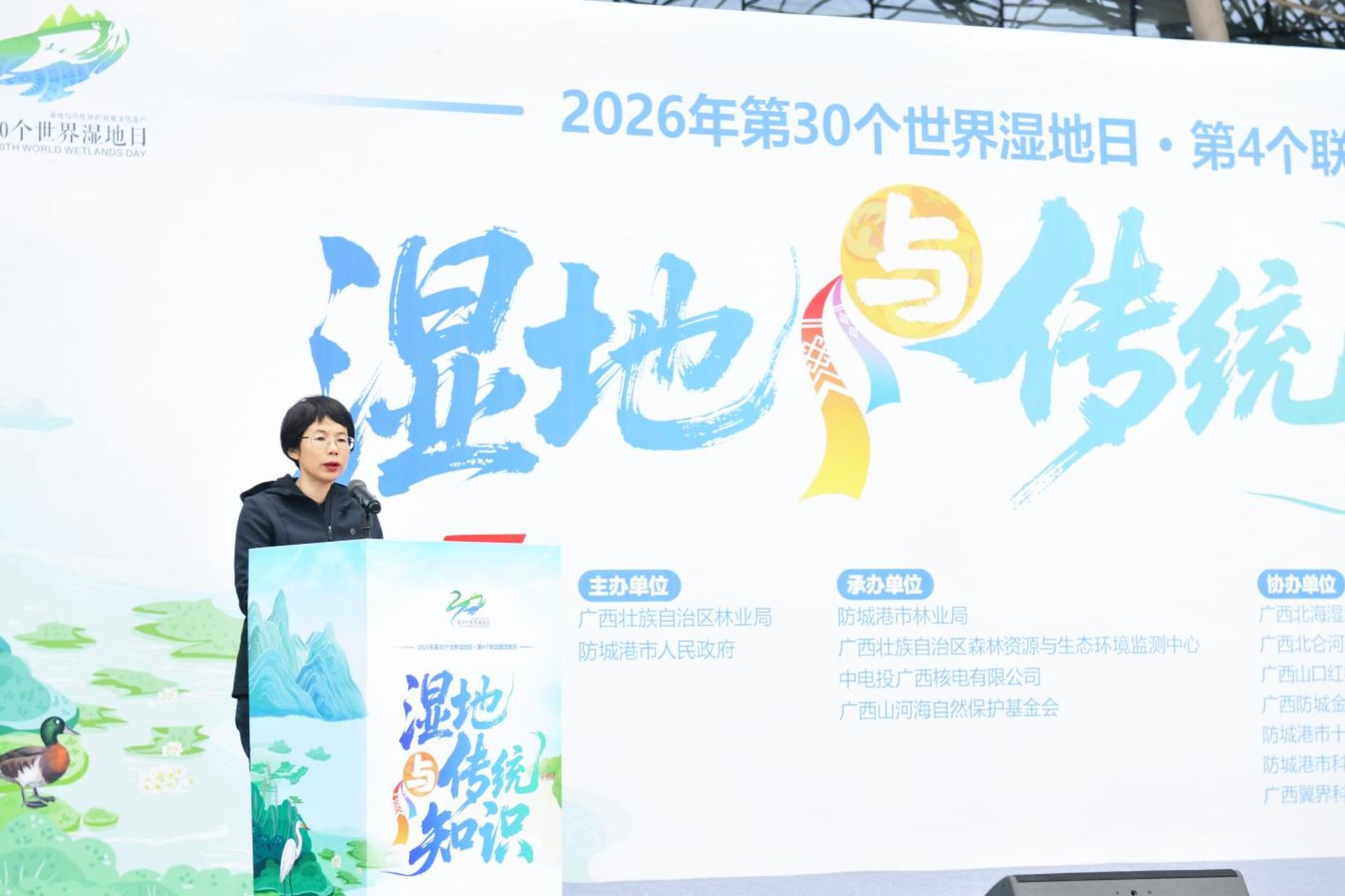 2026年2月2日,广西壮族自治区林业局在防城港市开展以“湿地与传统知识”为主题的第30个世界湿地日暨第4个联合国湿地日宣传活动。自治区林业局二级巡视员蒋迎红出席活动并讲话,防城港市人民政府党组成员、副市长廖云致辞。