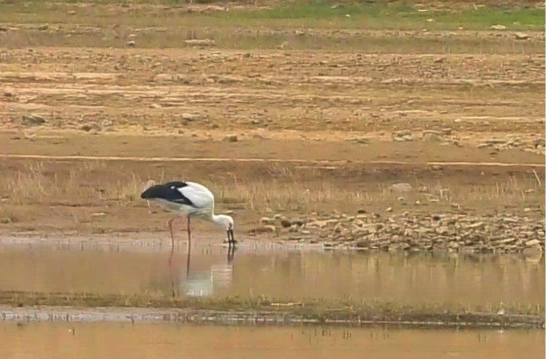 东方白鹳在青狮潭浅滩觅食