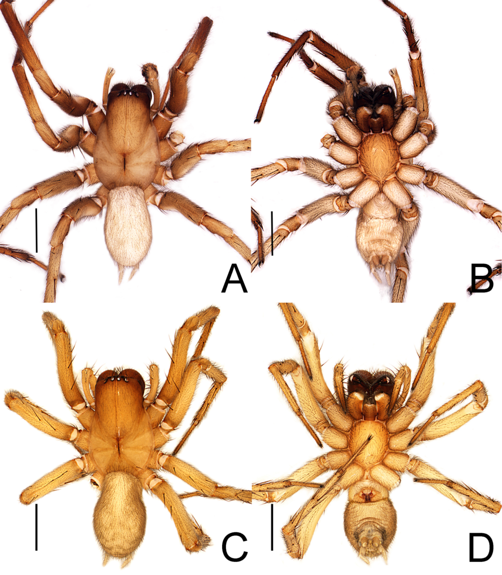 樊氏隙蛛外形,A-B 雄性(正模),C-D 雌性(副模)