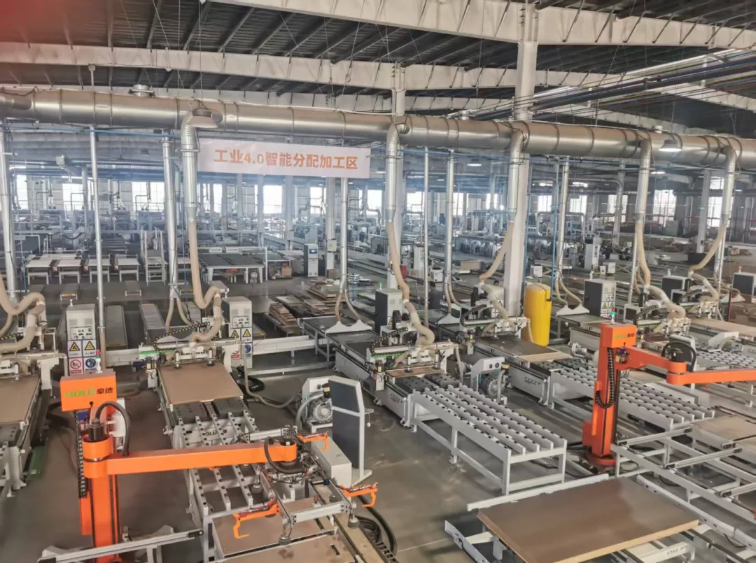 走进港南区广西博易特智能家居产业园,12条工业4.0智能全自动生产线高速运转,10台数控六面钻机精准作业,从原料进厂一智能分拣一自动加工一成品出库实现全流程无人化,材料利用率超过95%。园区生产负责人介绍,通过工业4.0智能体系赋能,企业成功打通个性化定制与大规模生产的壁垒,产品覆盖整体衣柜、橱柜、护墙板等全品类家居。