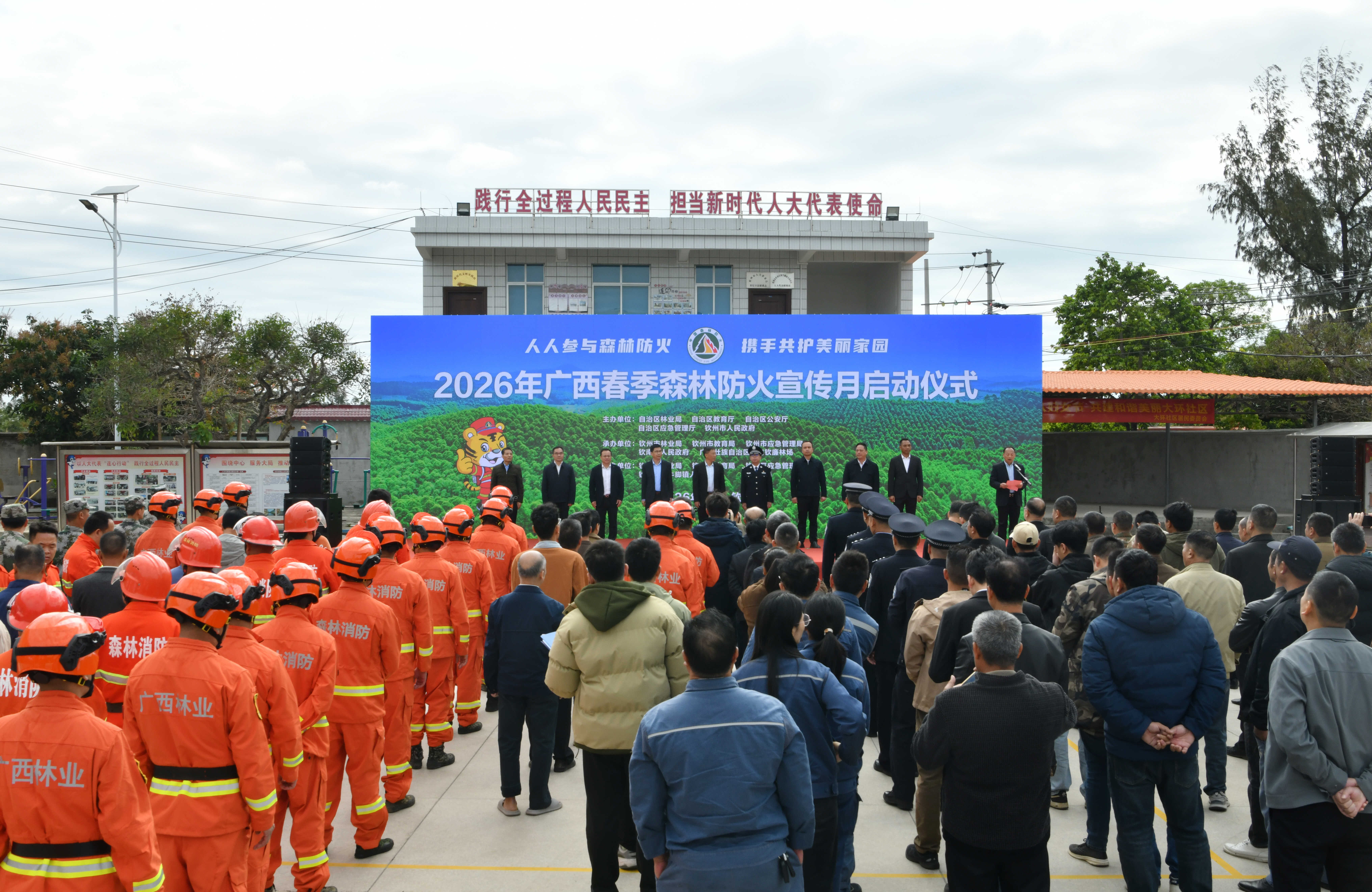 3月10日,广西在钦州市钦南区犀牛脚镇举行中小学森林防火宣传教育活动暨2026年广西春季森林防火宣传月启动仪式。自治区林业局森林草原防火督查专员黄可先主持仪式并宣布宣传月正式启动。自治区应急管理厅二级巡视员张明军、自治区公安厅二级警务专员唐毓生、钦州市人民政府副秘书长李建国出席并致辞。