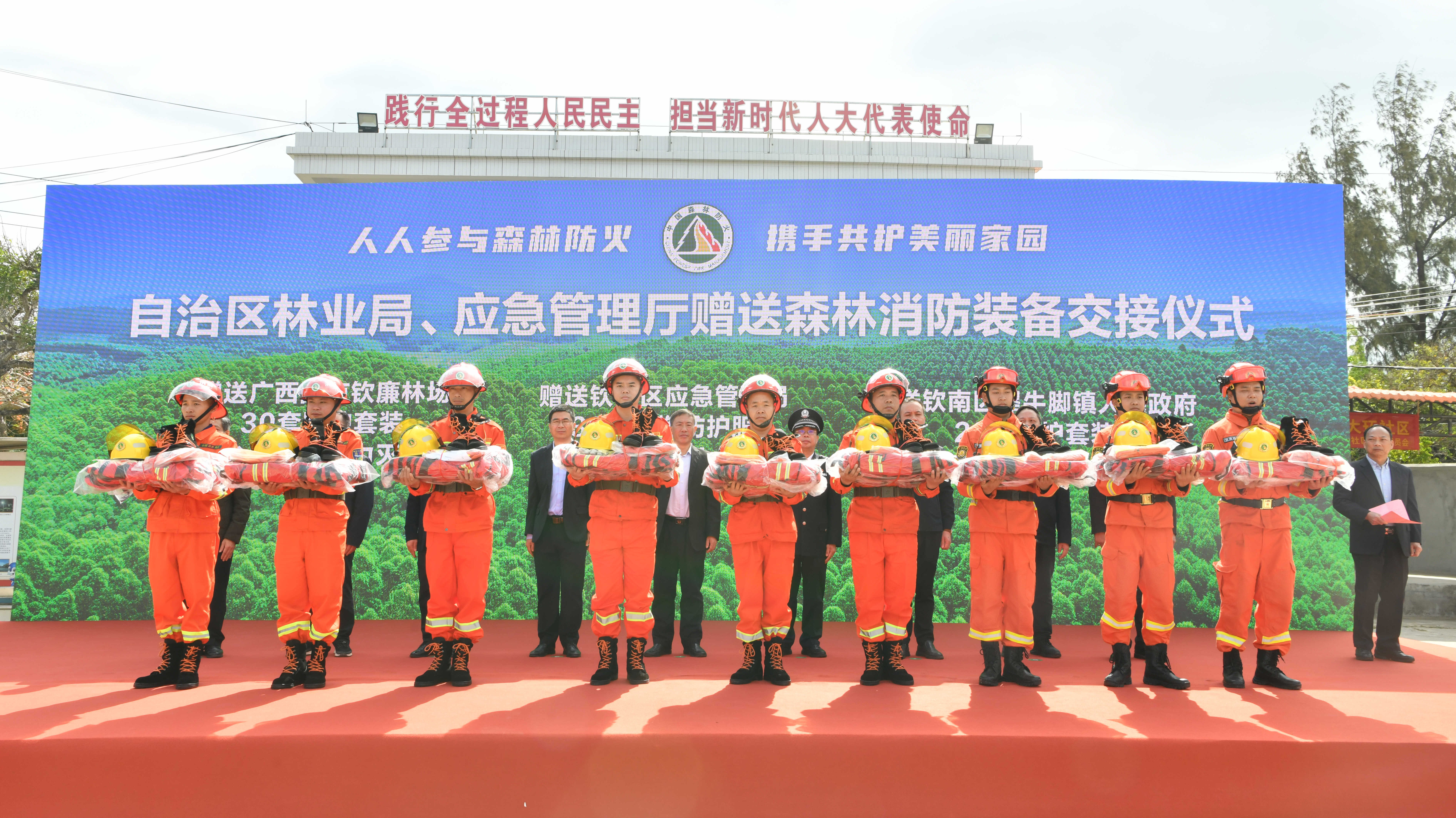 赠送钦廉林场专业消防队伍,钦南区、犀牛角镇半专业森林消防队伍森林灭火装备