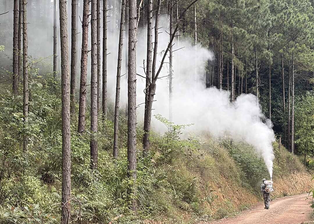 该林场紧扣冬春虫害防控关键节点,依照“预防为主、综合防治”的工作原则,提前制定方案、开展虫情调查、完成白僵菌采购调运。此次防控精准聚焦松毛虫常发林区、松脂采割林区,依托生物防治手段压低虫口密度。喷施期间,技术人员下沉指导、带班作业,全程把控作业质量,确保防控工作落地见效。