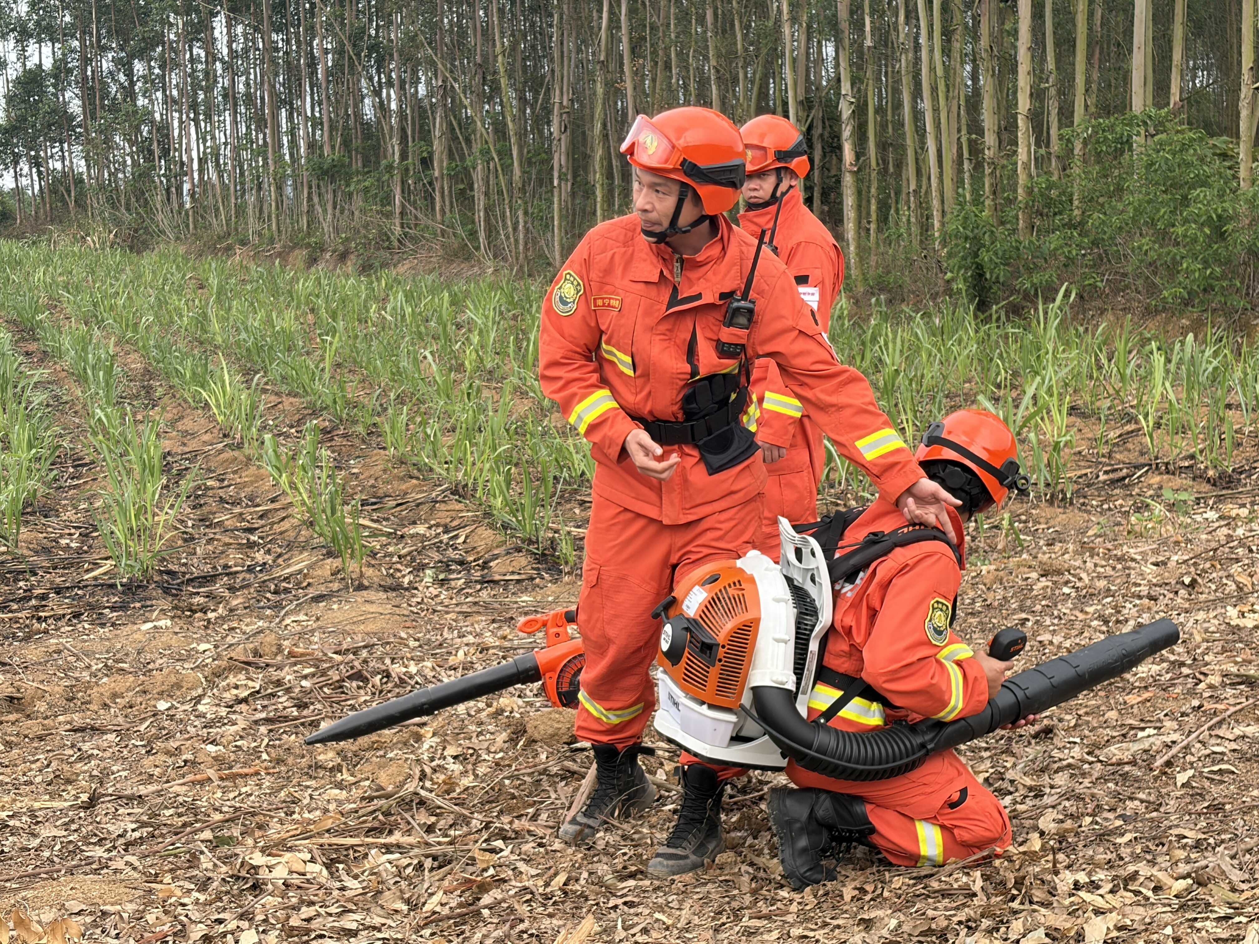 在实战培训环节,参演人员在七坡林场和南宁树木园专业森林消防队的指导下,开展扑火机具规范操作、科学扑火技术运用等实操训练,熟练掌握风力灭火机、二号工具等设备的使用技巧,强化火场安全撤离、余火清理等关键环节的处置能力,全方位检验应急队伍的快速反应、协同作战和科学扑救水平。整场演练环环相扣、紧张有序,各参演单位分工明确、配合默契,充分展现了专业的应急处置素养和过硬的实战能力。