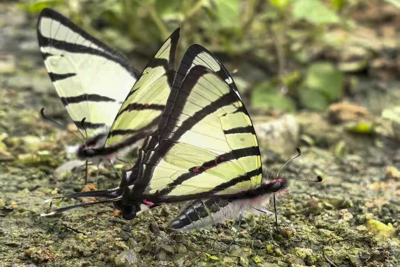 斜纹绿凤蝶属凤蝶科,是一种分布于热带及亚热带地区的珍稀蝶类昆虫,主要分布于广东、广西、海南、云南南部等温暖湿润地带,以及印度和东南亚等地。因每年仅在3月短暂出现,其他时节踪影难觅,故较为少见。