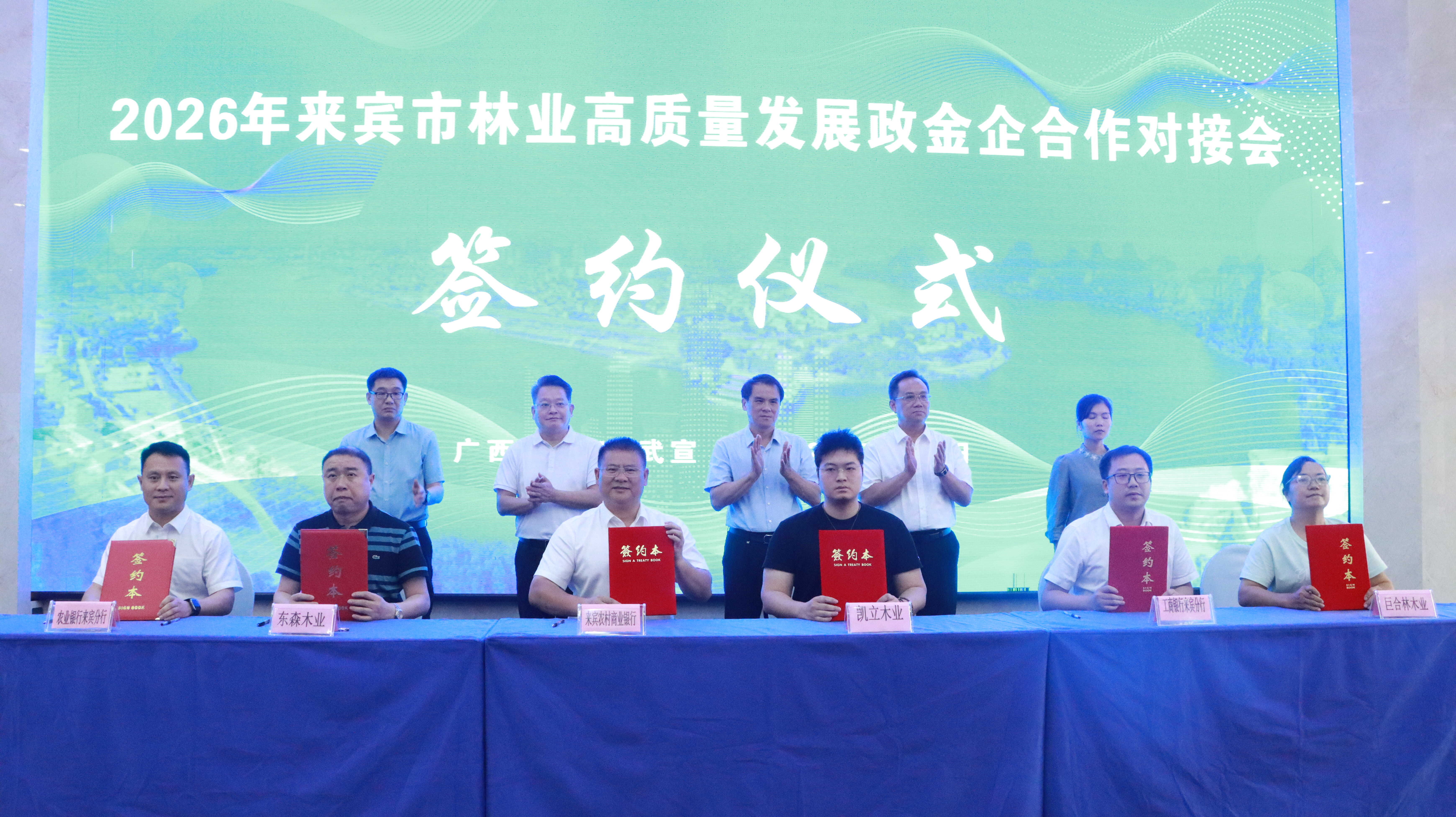 4月21日,2026年来宾市林业高质量发展政金企合作对接会在武宣县召开,9家金融机构与14家林业企业签订授信贷款协议,授信金额共计2.218亿元。来宾市人民政府副市长邓应文出席会议并致辞。