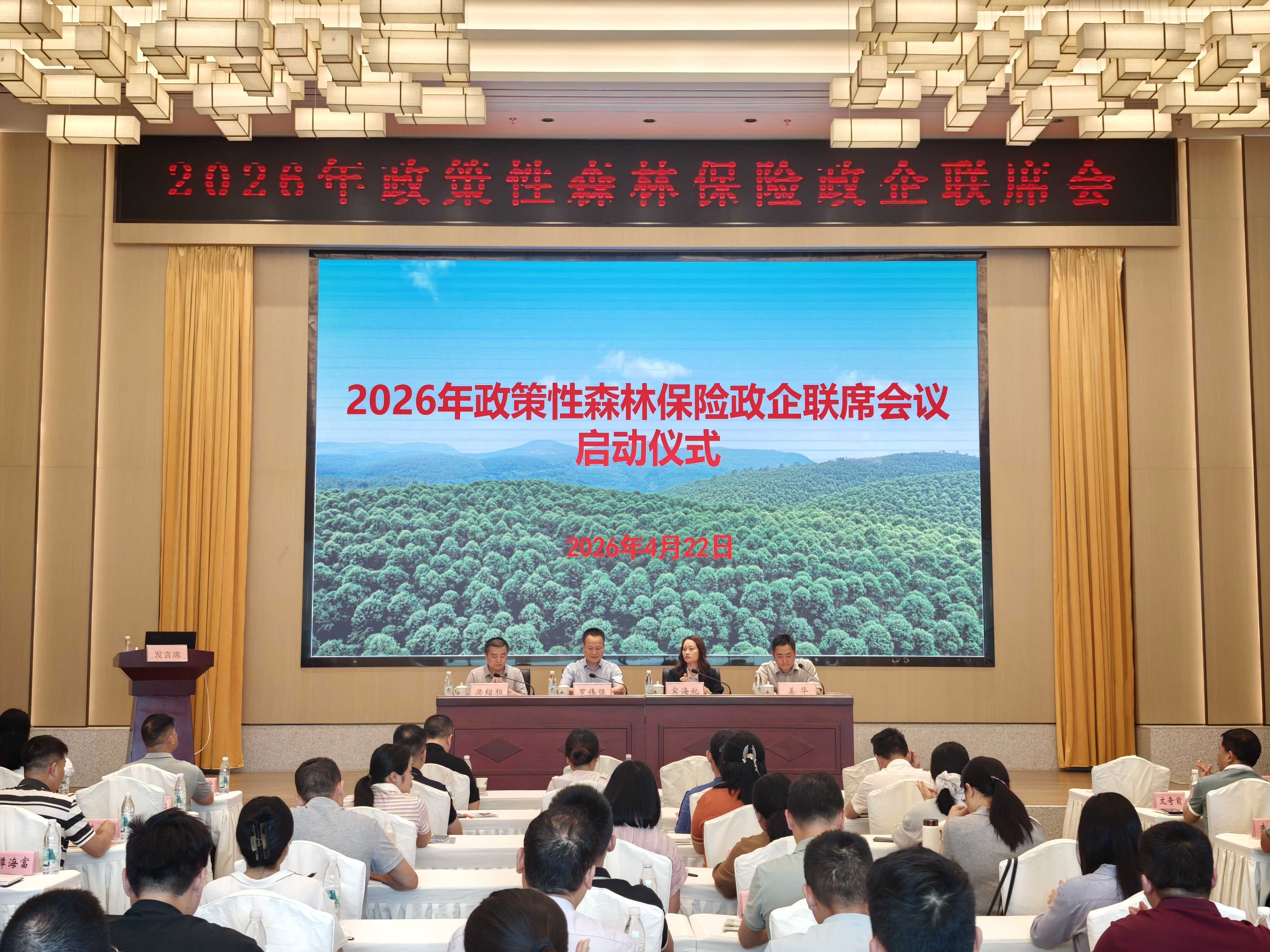2026年4月22—23日,自治区林业局联合中国平安财产保险股份有限公司广西分公司、广西林业干部学校,在广西国有派阳山林场召开2026年政策性森林保险政企联席会议。