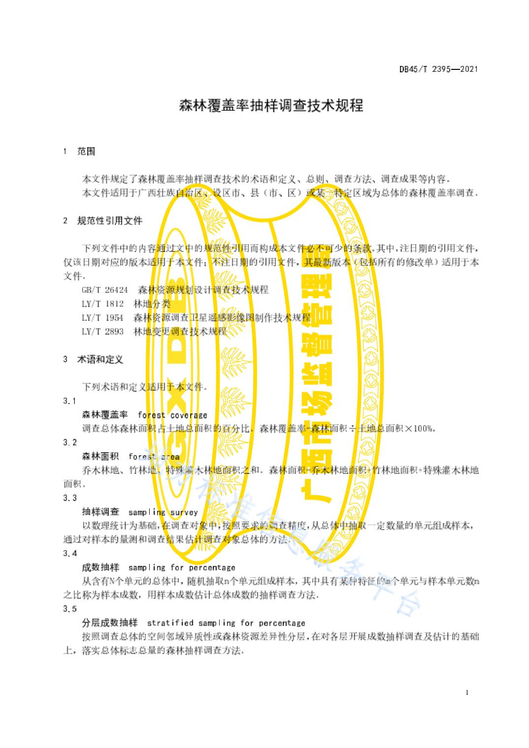 广西地方标准《森林覆盖率抽样调查技术规程》
