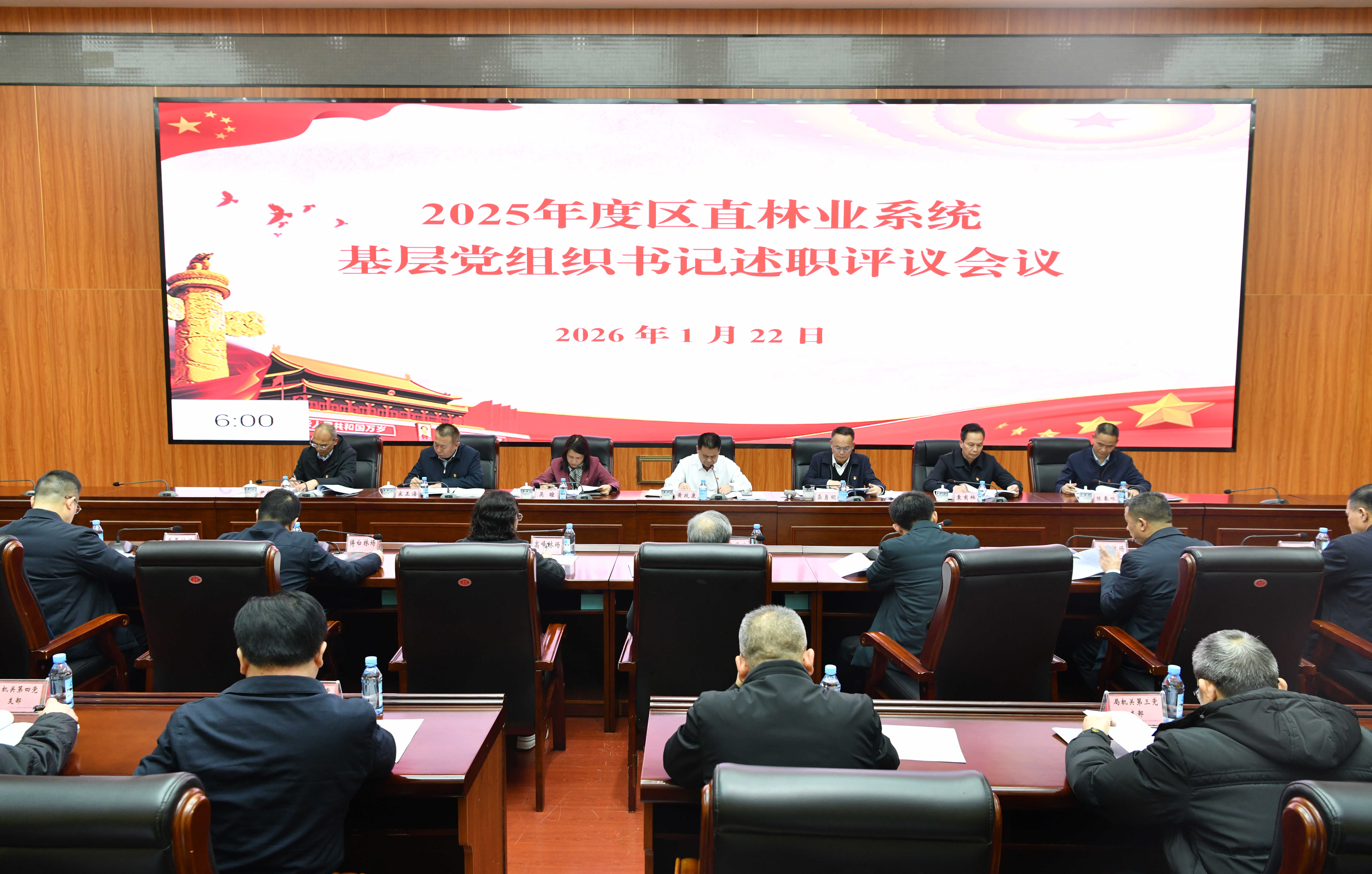 2026年1月22日,自治区林业局召开2025年度区直林业系统基层党组织书记述职评议考核会议。局党组成员、副局长、一级巡视员、机关党委书记黄政康主持会议,局党组成员、驻局纪检监察组组长龚勇明出席会议。