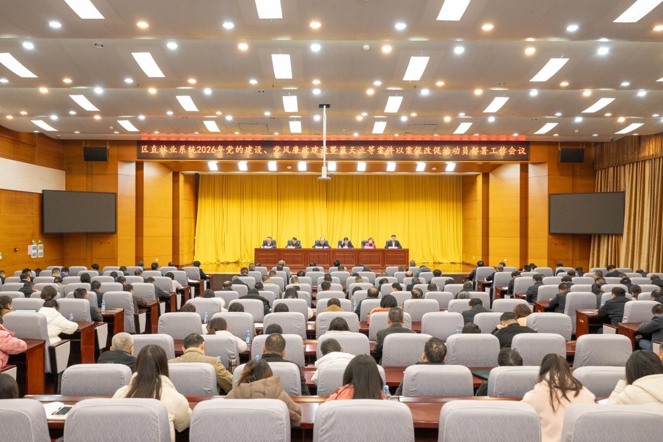 2026年1月23日,区直林业系统2026年党的建设、党风廉政建设暨蓝天立等案件以案促改促治动员部署工作会议在南宁召开。会议深入学习贯彻党的二十大和二十届历次全会精神,认真落实四中全会部署,全面总结2025年区直林业系统党的建设和党风廉政建设工作,研究部署2026年工作及以案促改促治工作。自治区林业局党组书记、局长蔡中平出席会议并讲话。