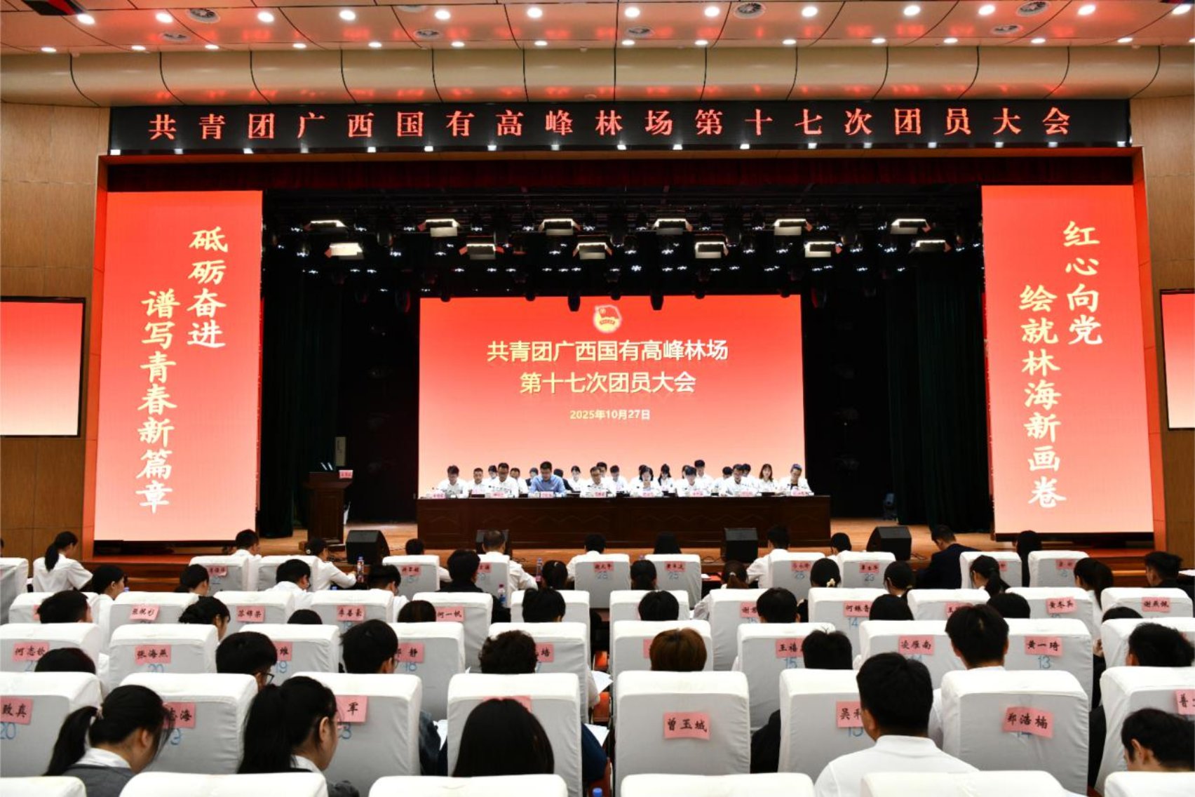 2025年10月27日,高峰林场团委召开第十七次团员大会。自治区林业局直属机关团委书记、资源处副处长吴咏臻,高峰林场党委书记陆珍先,党委副书记、场长李松海,党委副书记、纪委书记李大华,党委委员、副场长、工会主席魏国余出席会议,林场团干部、团员共82人参加会议。
