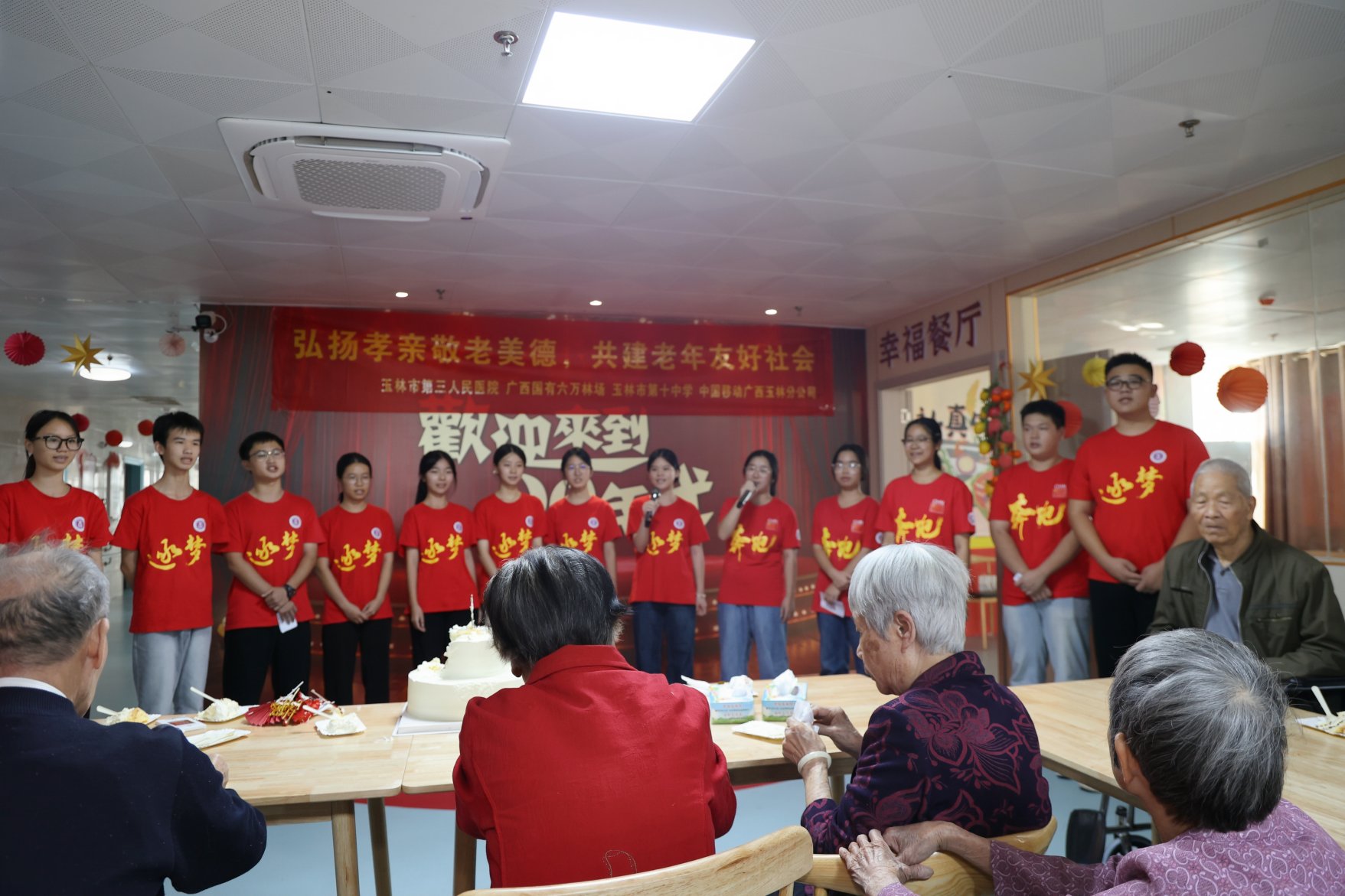 2025年10月27日,六万林场联合玉林市第十中学、玉林市第三人民医院、中国移动玉林分公司,共同开展以“弘扬孝亲敬老美德,共建老年友好社会”为主题的敬老节活动,以实际行动弘扬中华民族孝亲敬老的优良传统。