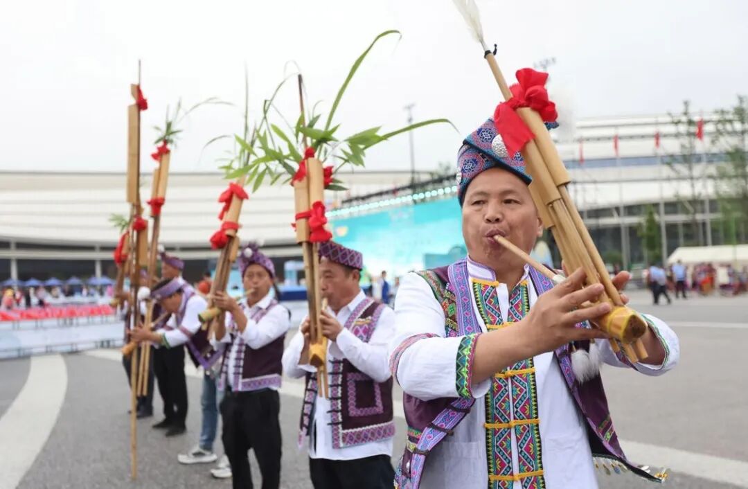 开幕式前举行了表演项目和民族健身操的比赛,以及开展芦笙舞、竹竿舞等民族特色表演,开幕式上各类文体表演将气氛推向高潮,给现场观众演绎了一场美轮美奂的视听盛宴。在开幕式现场还布置了体育文化展、体育普法宣传,融合了现代元素——房、车、美食展销,各式各样“吃购娱”消费新体验,让大家不仅能观赏精彩的开幕式盛况,还能逛展品美食,充分释放消费活力。