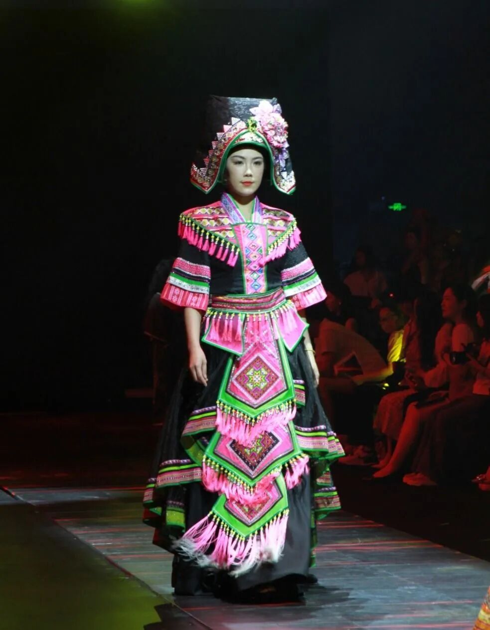金秀此次带来26套瑶族服饰,包含原生态瑶族服饰及融合了瑶族刺绣技艺与现代设计理念的瑶族盛装15套。广西民族大学相思湖学院、广西南宁职业技术学院、广西经贸职业技术学院、广西纺织工业学校等院校设计专业师生通过款式创意、图案设计、色彩搭配、工艺技法等呈现出风格各异的服装,在传统与时尚中碰撞出新的火花,探索出一条传承民族服饰文化的创新发展之路。